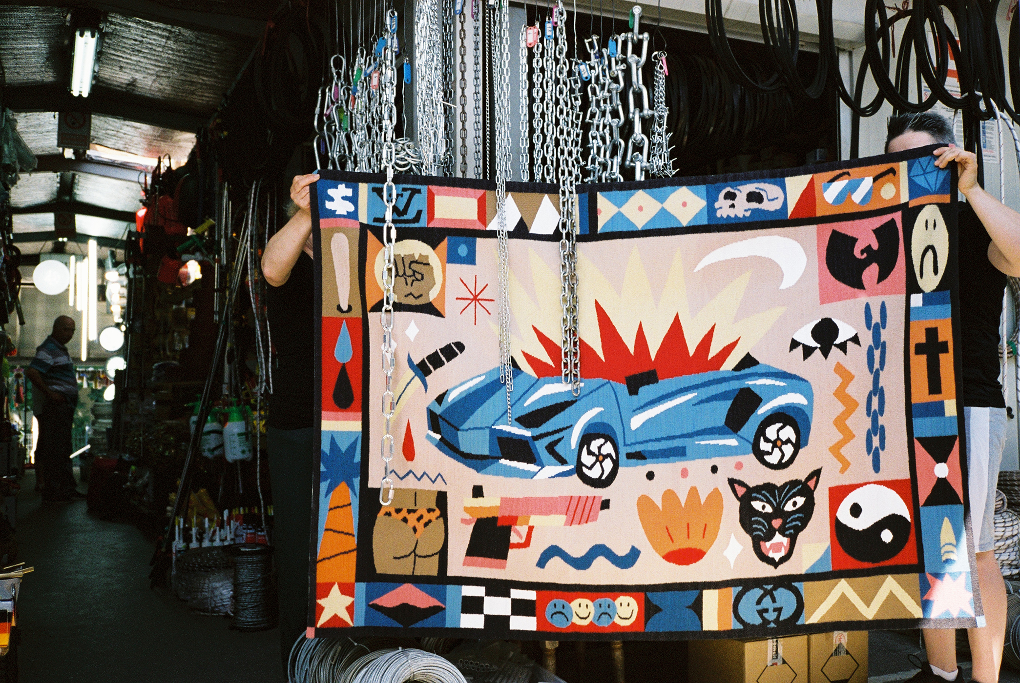 I find it kinda natural to return to their original medium, all the influences and inspiration I took from French medieval tapestry, Afghan rugs, Islamic art. I'm super happy with the result and plan on doing more for my upcoming solo show.