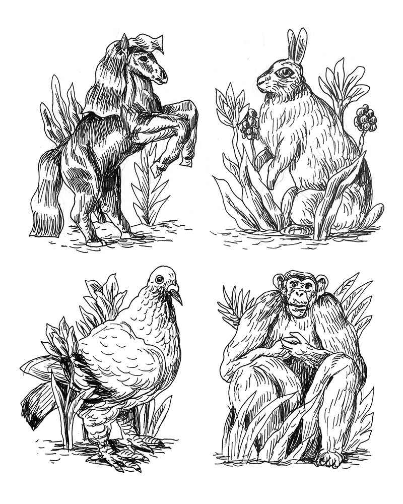 This is one of my latest personal projects, an attempt to diversify and strengthen my illustration portfolio. So I decided to make a series of illustrations for covers of four books that are somehow visually based on different animals - The Pigeon by Patrick Süskind, Watership Down by Richard Adams, Black Beauty by Anna Sewell, and On the Origin of the Species by Charles Darwin.