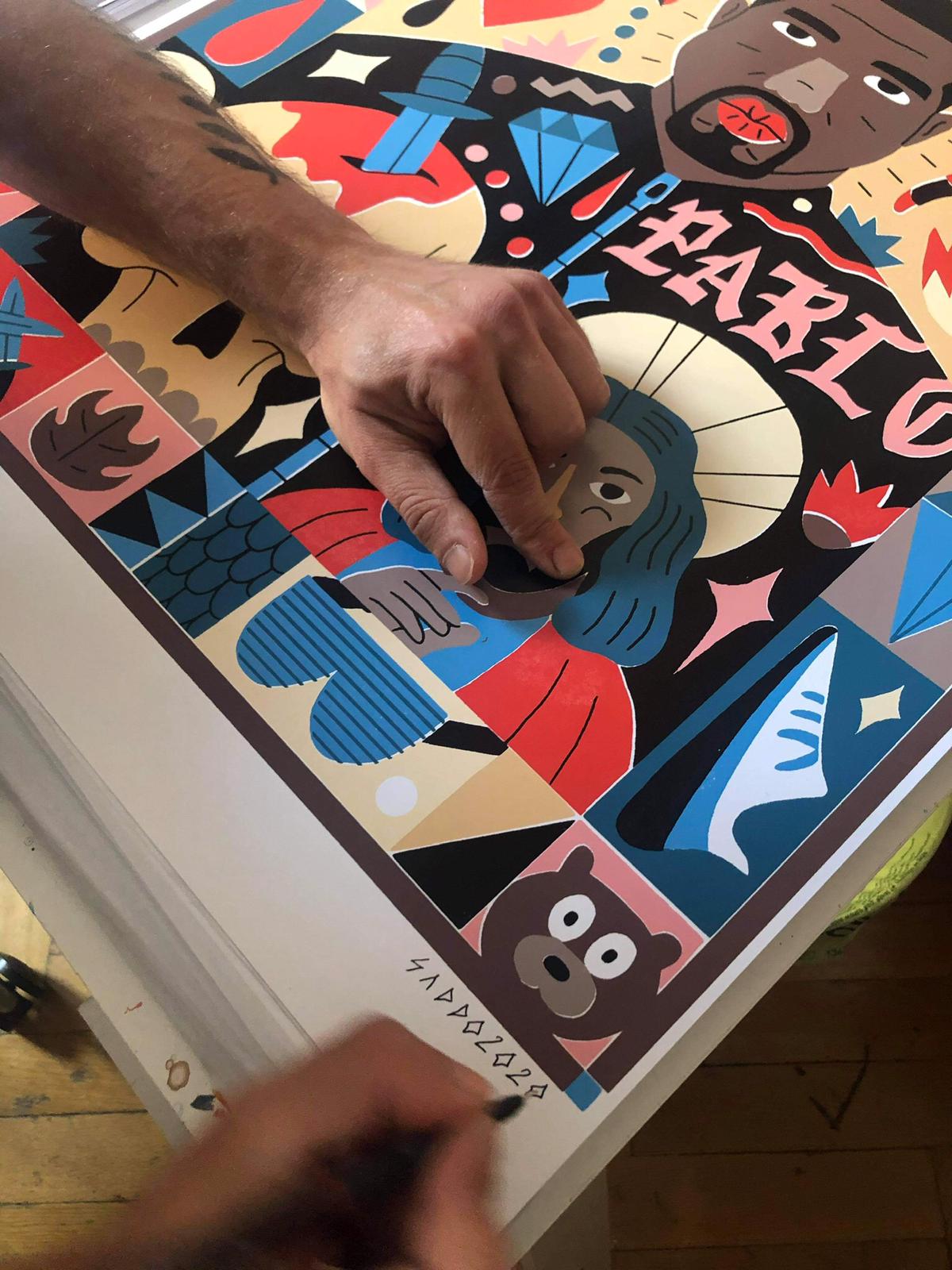 Kanye, 70 x 50cm / 84 x 69cm (with frame), 9 colours hand printed screen print, edition 1/50+5AP, on Fedrigoni Inspira Purezza 360gr/sqm, 2020, each numbered and signed by the artist, 1350ron including standard wooden frame.
