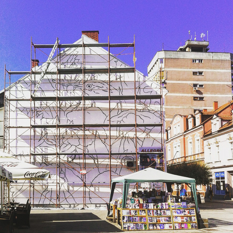 A couple of months ago a friend of mine recommended I participate in this mural contest, called "Paola de Manincor", in a small city in Bosnia, called Prijedor. The contest is named after an Italian artist who painted the first mural in Prijedor in the '90s.