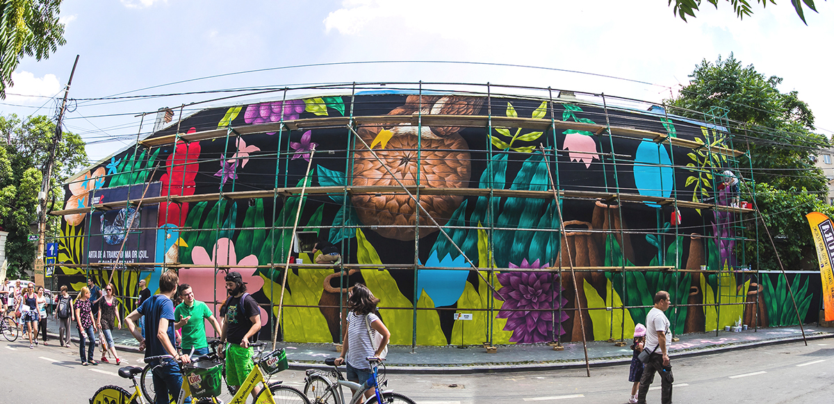 I painted this mural in Bucharest, Romania, for the tenth edition of Street Delivery, a street festival trying to raise some awareness towards some of the main problems of the city. This year's edition's main focus was global warming and carbon footprint. I was lucky enough to have my project chosen out of the rest of the submissions.