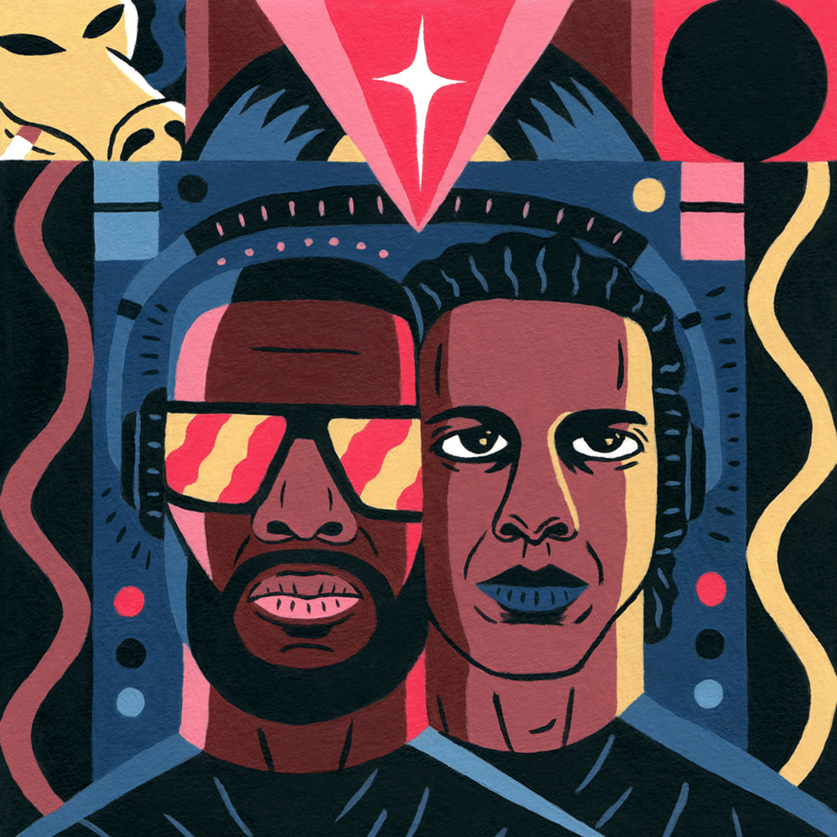 Illustration for The New Yorker, for the article "The Obsessive Beat-Making of Madlib", by Hua Hsu. The article references "Sound Ancestors", Madlib's latest album, in collaboration with Four Tet.