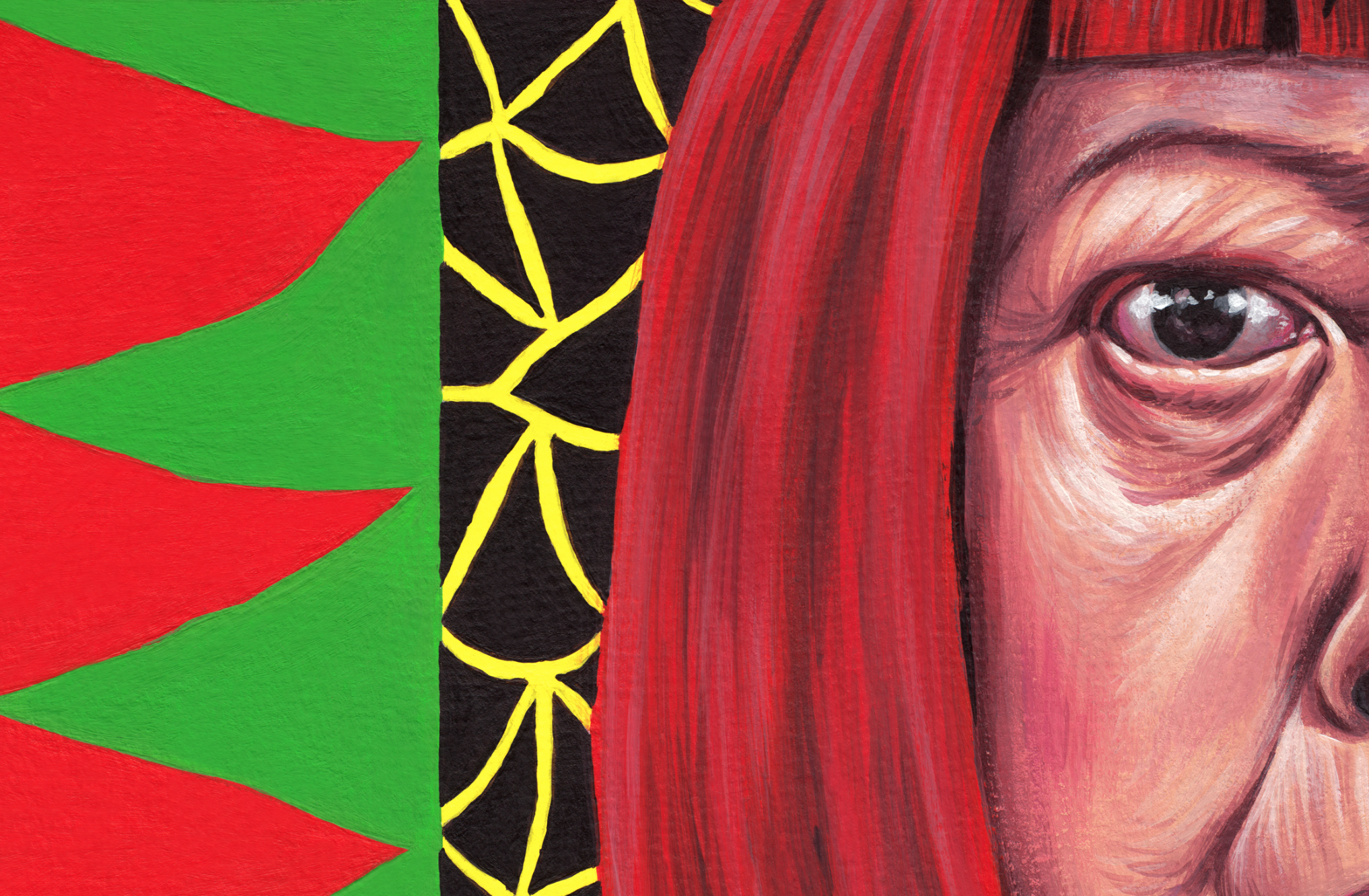 I painted this portrait of Yayoi Kusama for the opening of a three-story immersive installation of her yellow Dots Obsession at